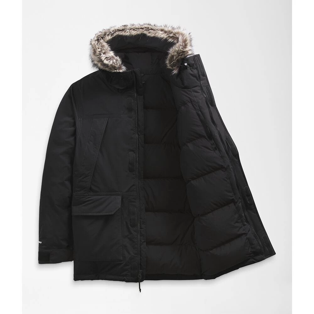 Combat frigid temperatures with the stylish and weather-proof McMurdo Parka made from recycled materials, featuring 600-fill down insulation, concealed zip pockets and a neck gaiter built into the hood with a removable faux fur trim.
